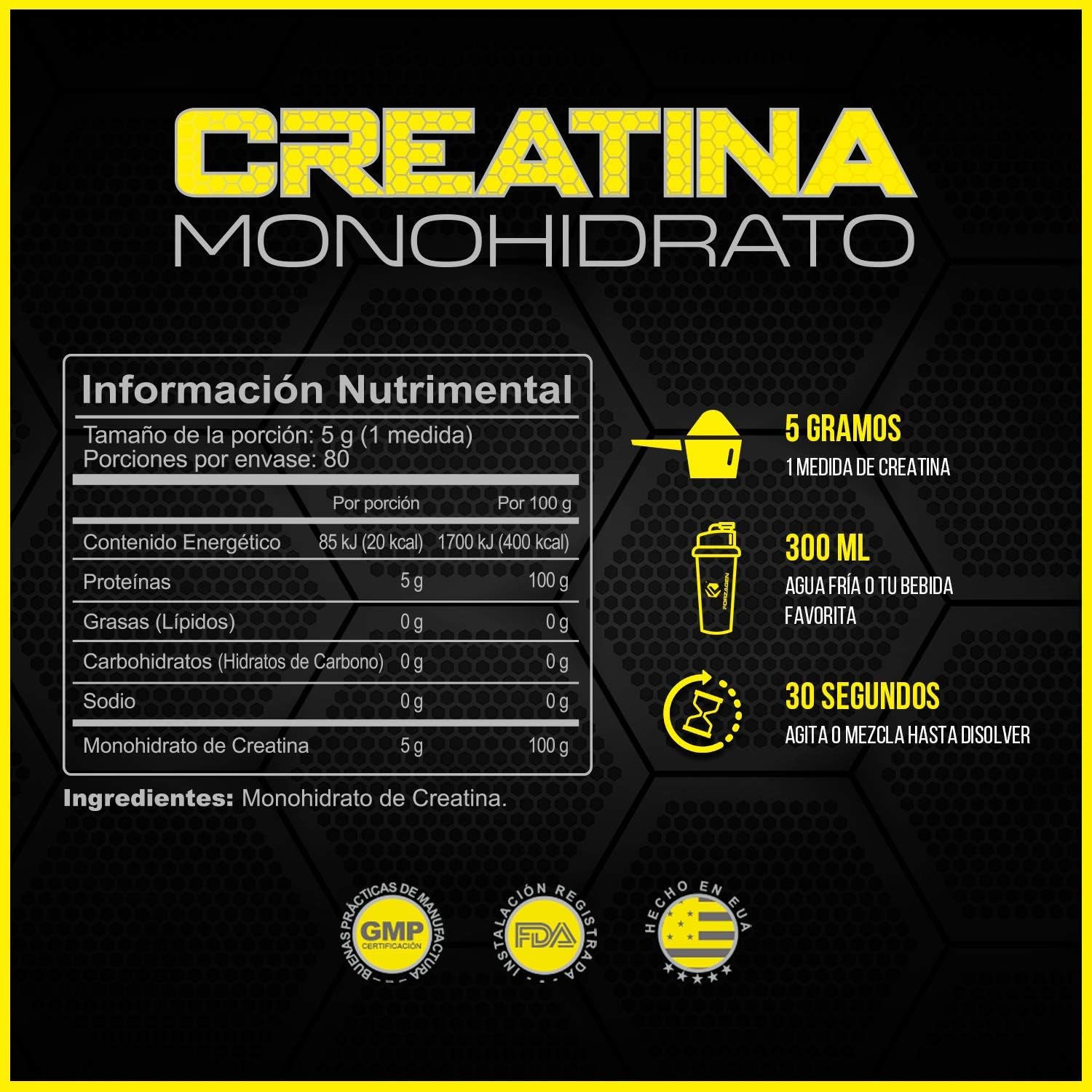 - 🏋️ 5 g de creatina monohidratada por porción, ideal para incrementar la fuerza y llevar los entrenamientos al límite