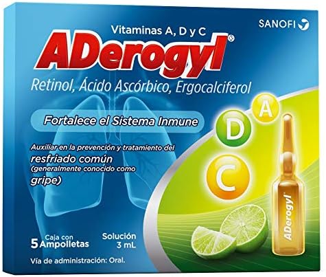 Aderogyl, 5 Ampolletas de 3ml, Vitaminas en Solución para la Prevención y el Tratamiento de la Gripe