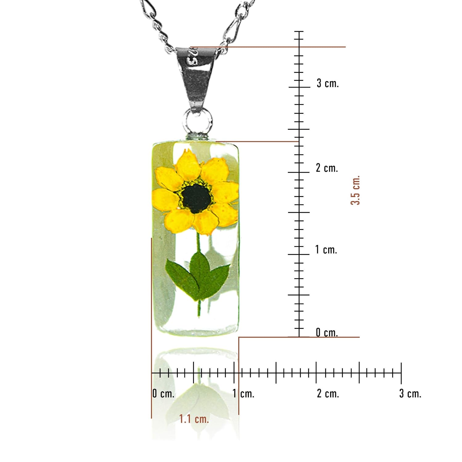 DIJE/COLLAR CILINDRO -TAMI- EN PLATA 925 CON GIRASOL NATURAL (SÍMBOLO DE FELICIDAD Y LUZ) EN FONDO BLANCO Y CADENA DE PLATA TIPO CART 45 CM, INCLUYE CAJA DE REGALO