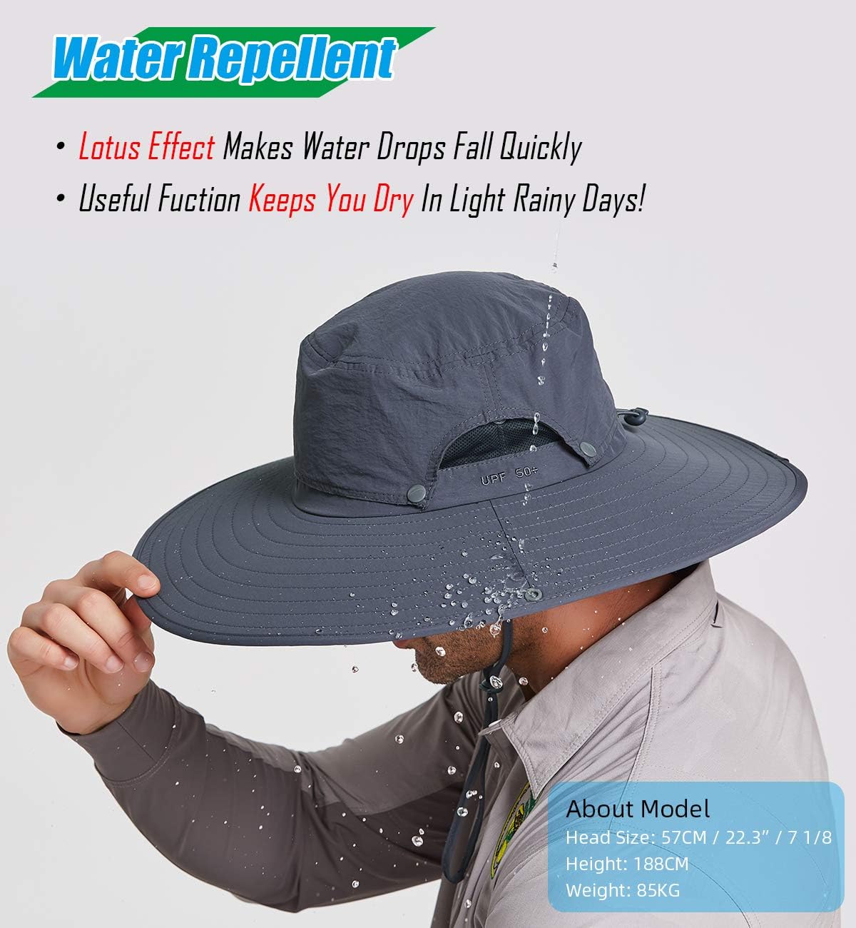 - Cómodo & Repelente Al AguaTejido 100% nylon. Repelencia del agua. UPF50 + protección solar UV. Cómoda banda de sudor de algodón. Una maravillosa experiencia de uso.
