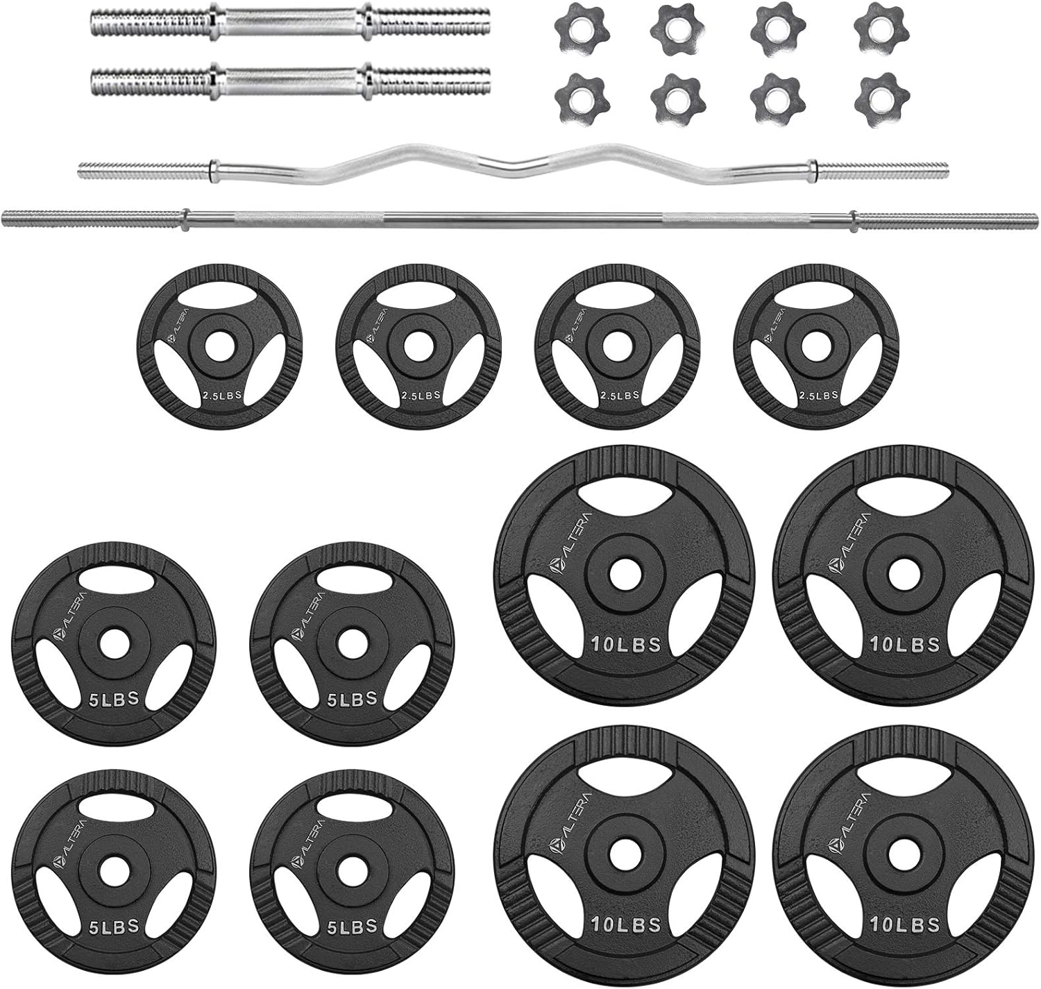 Altera Kit De Pesas Barra Recta, Barra Z, Par De Mancuernas, Discos - 70LB Set Pesas