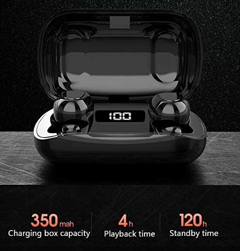 - ♬ Tiempo de reproducción 3H y caja de carga de 350mAh: Caja de carga portátil con batería incorporada de 350 mAh, el auricular se puede cargar completamente unas 4 veces. Una vez que el auricular se coloca en la caja de carga, se puede cargar automáticamente y solo se necesita 1 hora para cargarlo por completo. Obtienes 3 horas de reproducción de música continua y hasta 120 horas de tiempo de espera.