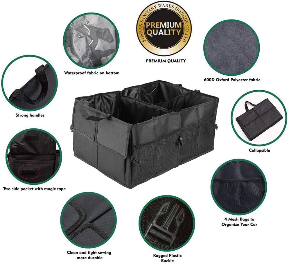 - Gran almacenamiento: 52 x 26 x 38,5 cm. Tendrás un montón de espacio de almacenamiento para organizar equipos de emergencia, equipo deportivo, compras y suministros de coche.