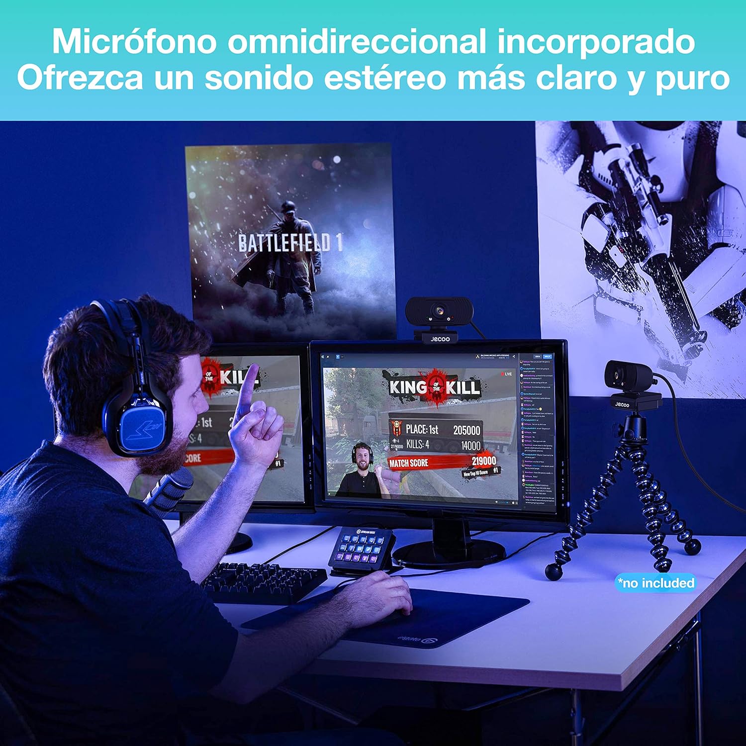 - [ Amplia visión y práctico soporte universal] Ajustable hacia arriba y hacia abajo 180 grados, puedes ajustar el ángulo según sea necesario. Gracias a su soporte flexible, esta cámara web es adecuada para una amplia variedad de ordenadores portátiles, de escritorio y otros monitores.