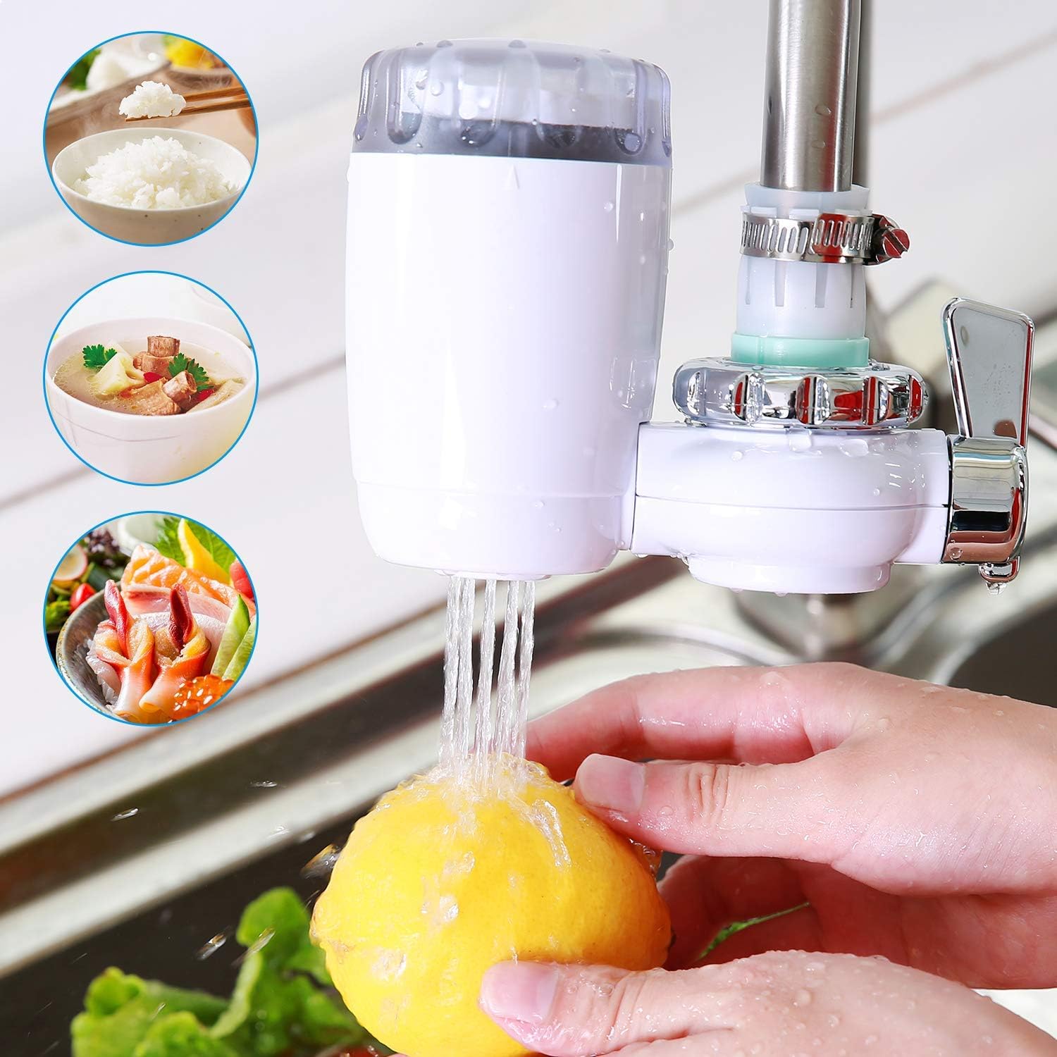- Filtro de grifo duradero: en comparación con otros purificadores de agua del grifo en el mercado, este sistema de filtración de grifos se caracteriza por una vida útil superior del filtro, se puede recuperar completamente limpiando con nuestro papel de lija, la contaminación profunda y el bloqueo de los poros de la membrana del filtro pueden prevenir de manera efectiva El agua dulce vuelve a estar contaminada.