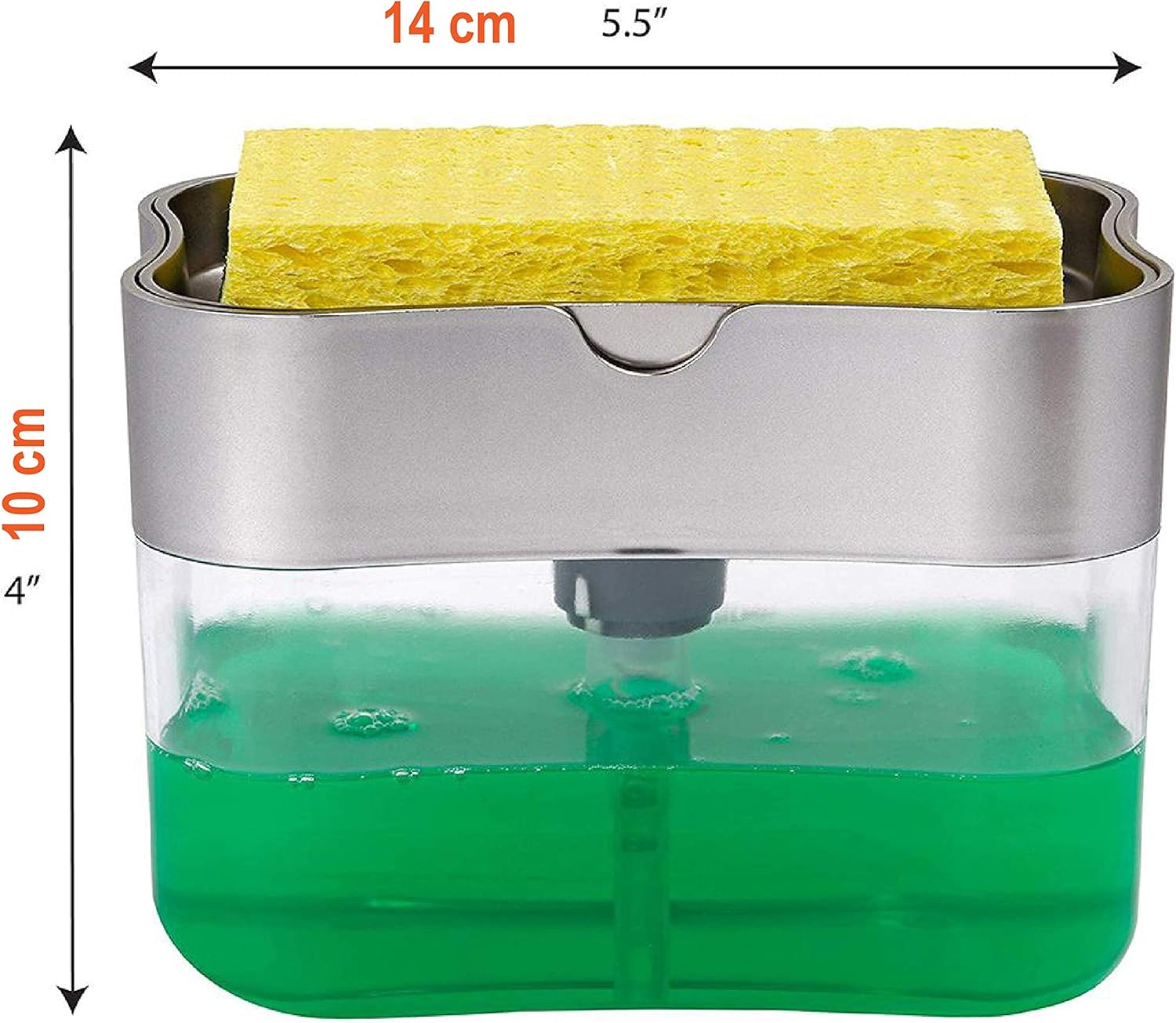 - Dispensador instantáneo 2 en 1 operación manual, organización compacta: dispensador de fregadero sostiene esponjas, estropajos, trapos. Gracias a su funcionamiento de solo recibir la cantidad exacta de jabón evitaremos que el contacto continuo de la esponja en el agua genere bacterias y moho