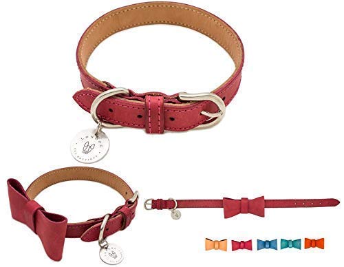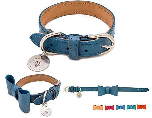 Collar de perro de cuero hecho a mano personalizable LONDOG incluye inserto de modelo Yaxha (varios tamaños y colores)