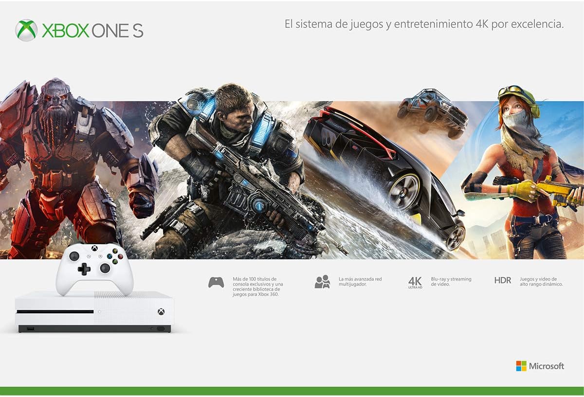 - El paquete incluye*: consola Xbox One S de 1 TB, control inalámbrico Xbox (con entrada para auriculares de 3.5mm), cable HDMI, 1 mes de prueba de Xbox Game Pass y 14 días de prueba de Xbox Live Gold.