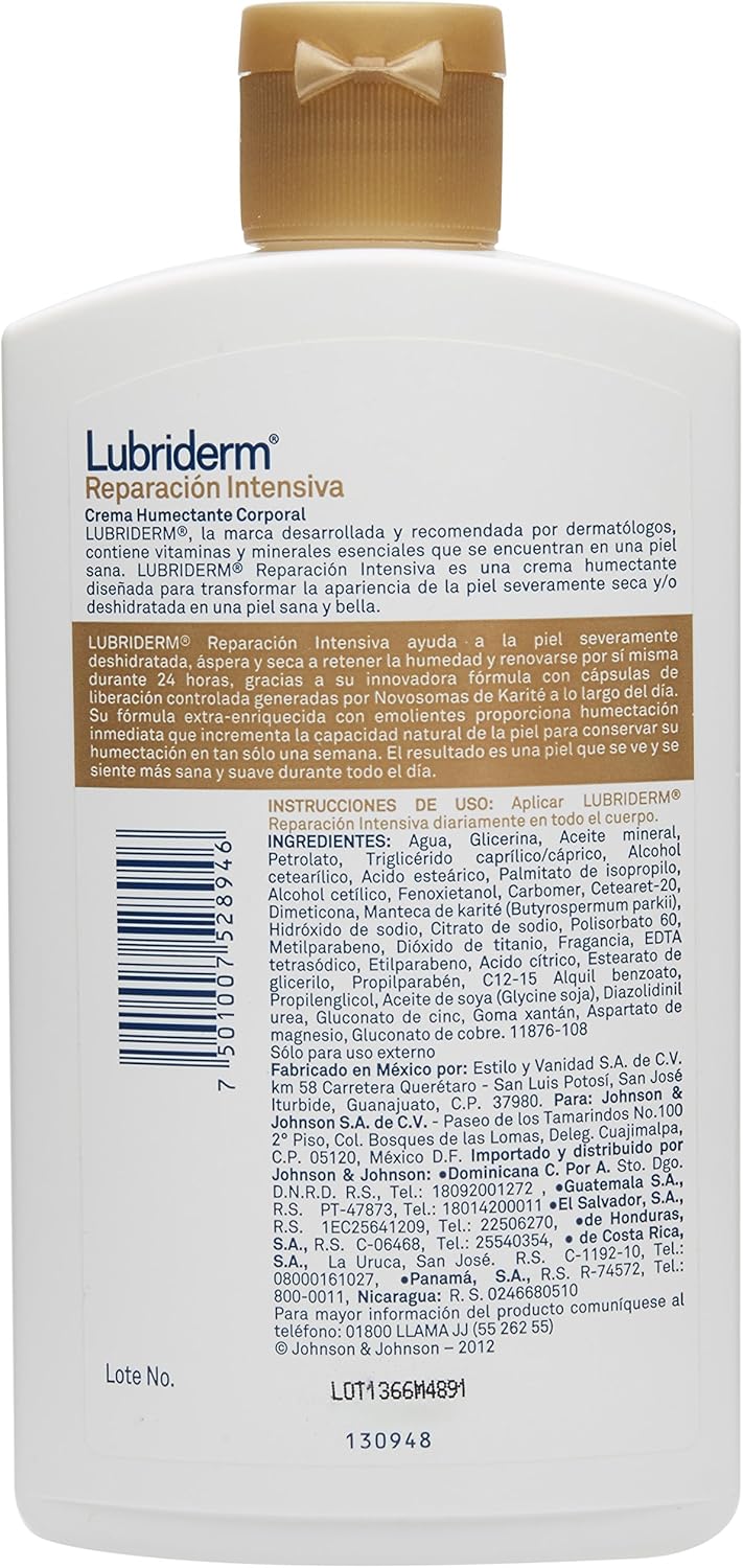 - Lubriderm Reparación Intensiva ayuda a la piel extra seca o severamente deshidratada
