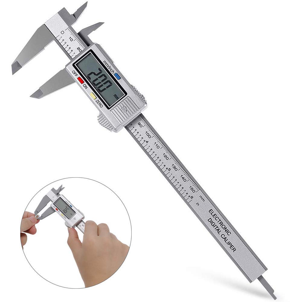 - ➤CHIP ACTUALIZADO Y ALTA PRECISIÓN: Fabricado con el chip actualizado, el calibrador a vernier LCD IP54 se puede medir. Calibrador digital con una conversión en pulgadas y MM, rango de medición: 0-150 mm / 0-6 pulgadas; El tornillo es más preciso y exacto hasta ± 0.03 mm.