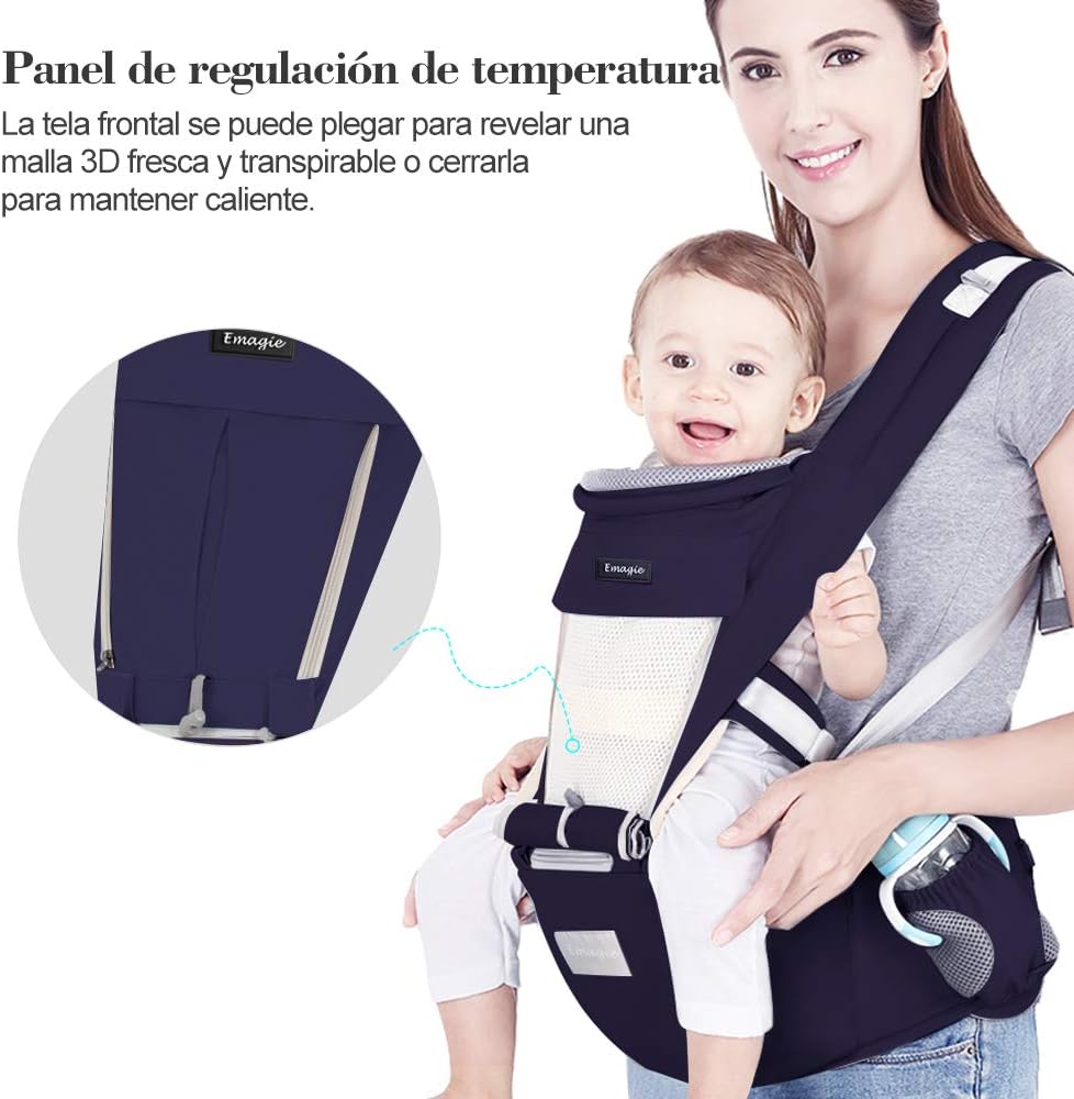 - Posiciones Múltiples: Frente de la mochila portabebés hacia adentro (configuración fetal, infantil o de niños pequeños), frente hacia afuera, cadera o espalda.
