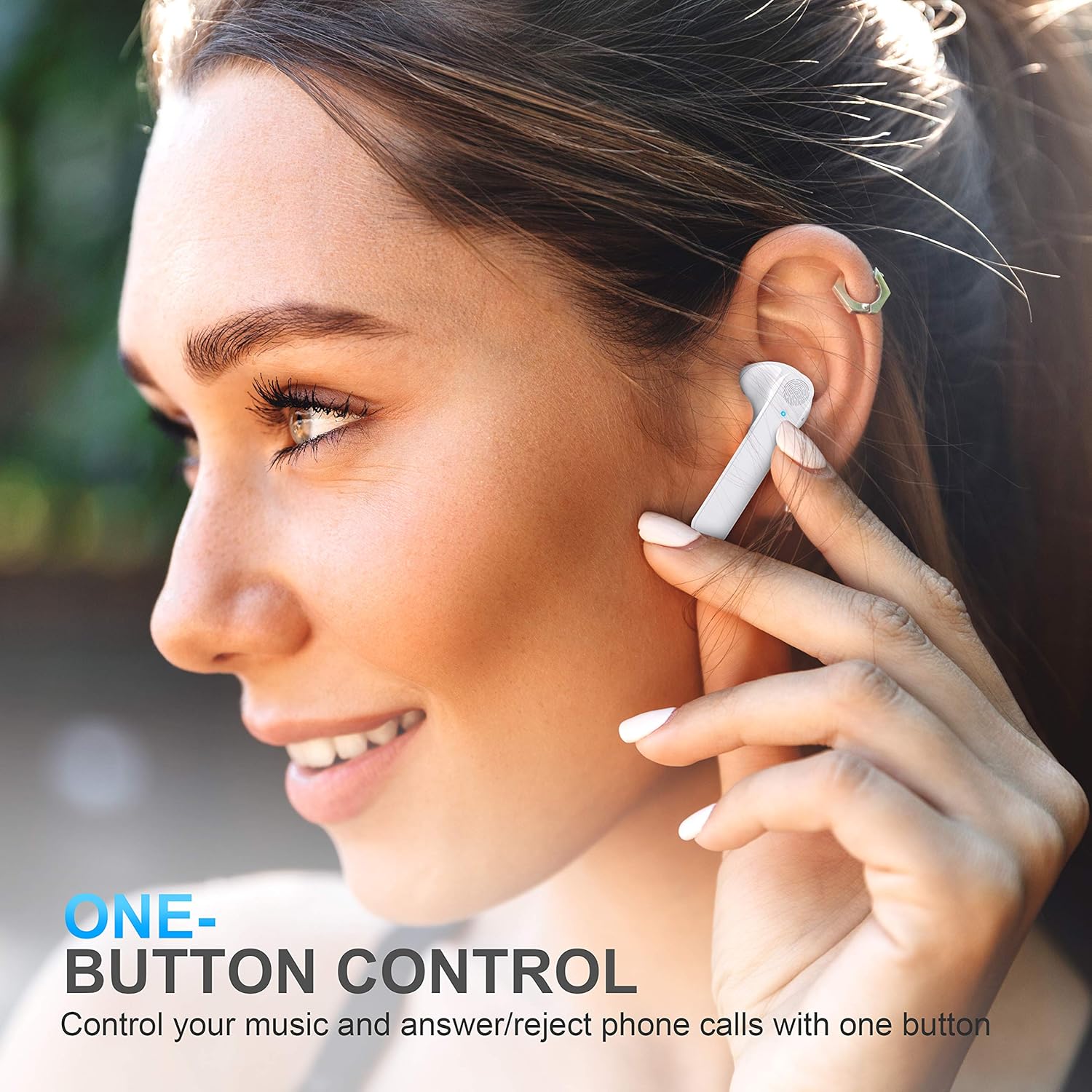 - BLUETOOTH 5. 0 & INALAMBRICOS: nuestros auriculares, al igual que otros auriculares inalámbricos Bluetooth, adoptan la última tecnología Bluetooth 5.0 y se pueden conectar a cualquier teléfono móvil o computadora con dispositivos Bluetooth, nada del otro mundo.