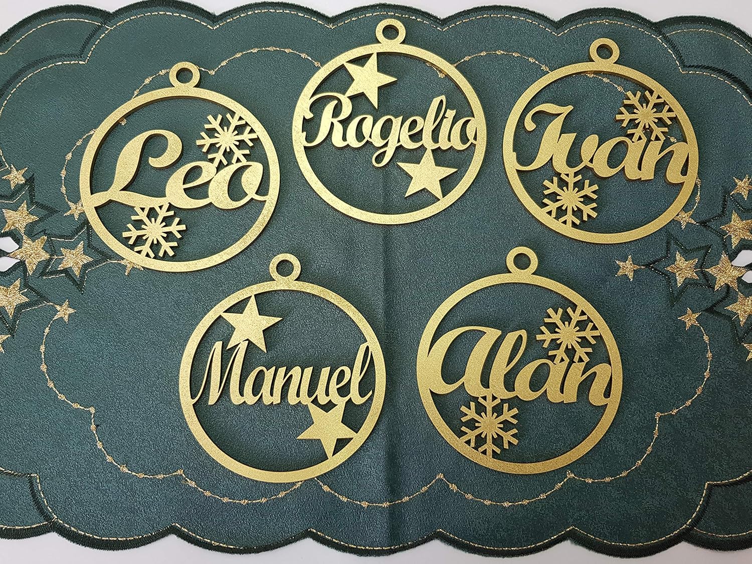 Juego de bolas con nombre para árbol de Navidad 10 piezas bolas MDF cortadas con láser