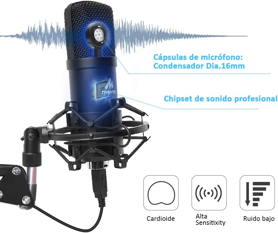 - ¡asegúrese de comprar el micrófono de Nature shopping, todos los demás vendedores son falsos!TRANSDUCTOR DE CONDENSADOR ELECTRETO DE 16 mm Y ANILLO DE IMÁN: con el transductor de condensador de electreto de 16 mm, el micrófono USB puede proporcionarle una respuesta de bajos fuerte. Este micrófono de condensador profesional capta un audio cristalino.