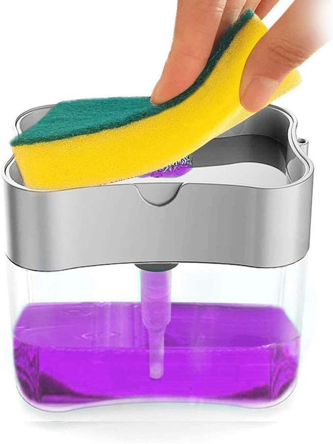 - Diseño Conveniente: Presione la placa superior del carrito dispensador de jabón para platos con una mano y dispense el jabón directamente sobre la esponja. El recipiente dispensador de jabón para platos contiene 1 esponjas de alta calidad. y contiene todas las esponjas, depuradores, trapos, estropajos, etc.