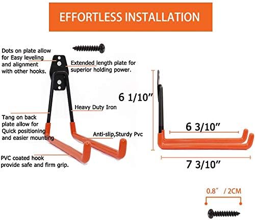 - ★ FUNCIONES POTENTES: Crea un espacio de almacenamiento eficiente, justo lo que necesita para colgar y sostener sus artículos, como plegados, sillas, escaleras, bicicletas, herramientas eléctricas y otros artículos pesados y múltiples. Diseño de doble gancho calificado para colgar mangueras de aire, herramientas de jardín y césped . ¡Colgar del suelo en el jardín de su garaje o en su casa! Un sinfín de opciones para un almacenamiento eficiente en el garaje, tienda, sótano o cobertizo.