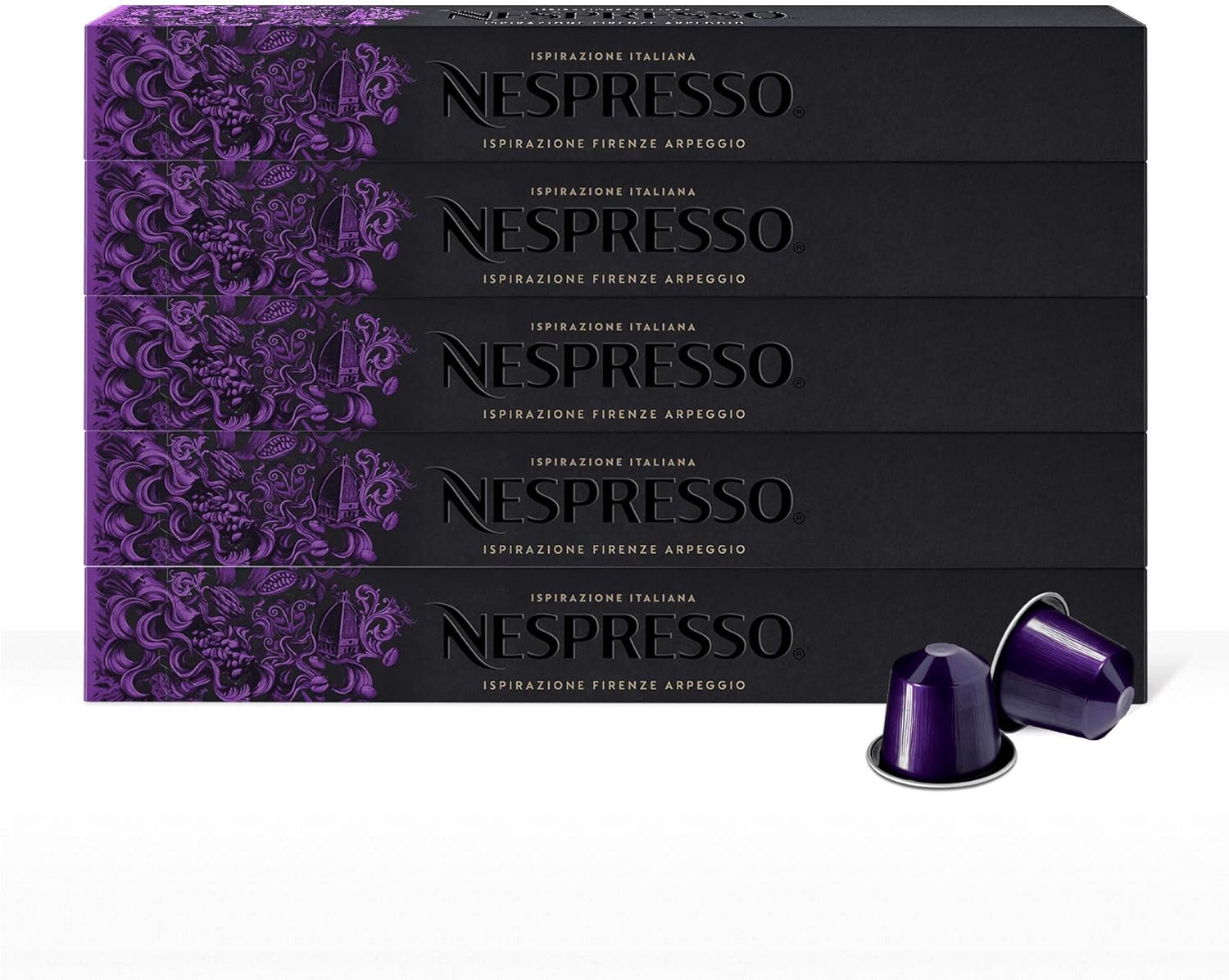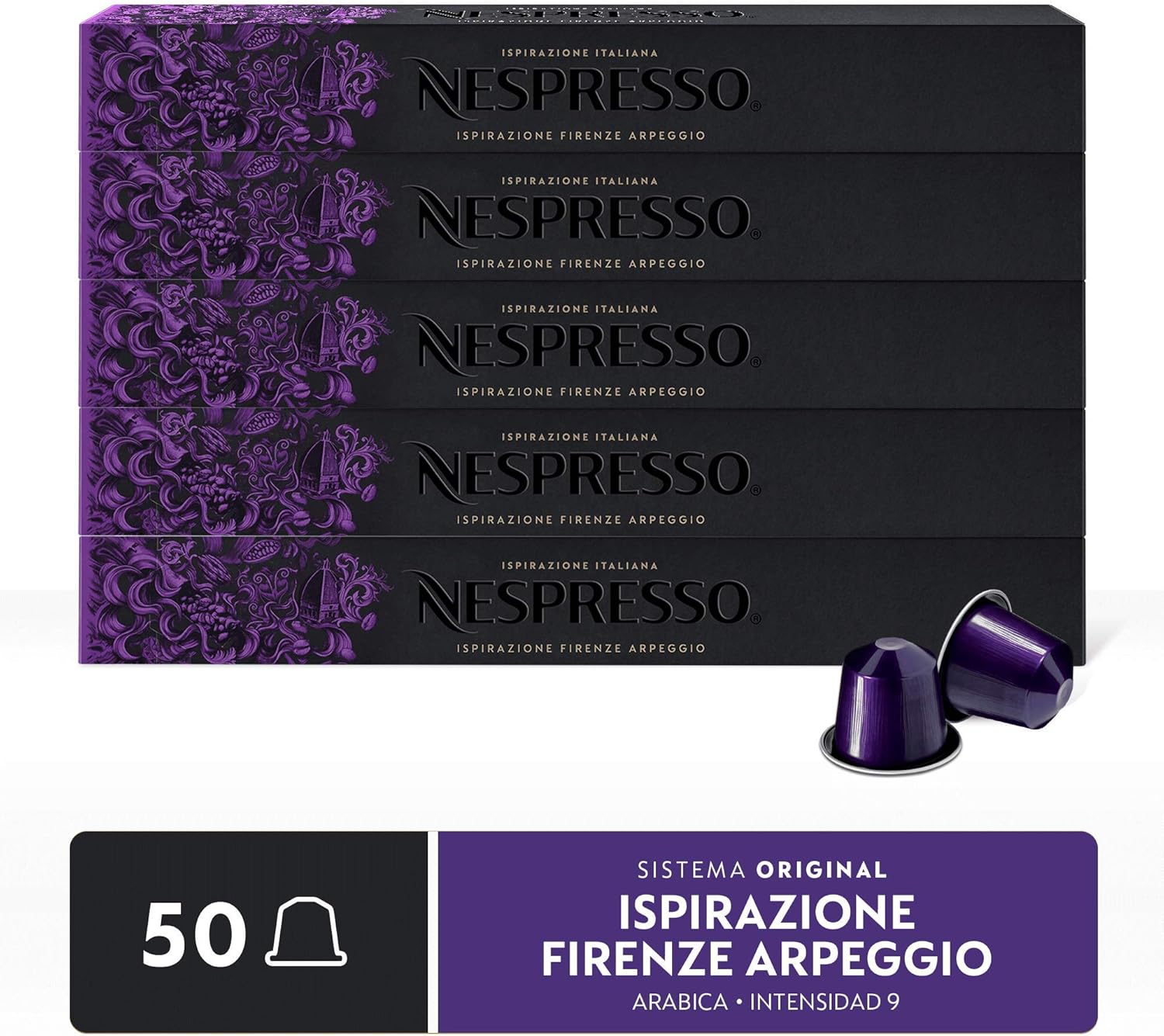 - Contenido 5 sleeves de 10 cápsulas de café arpeggio para un total de 50 cápsulas