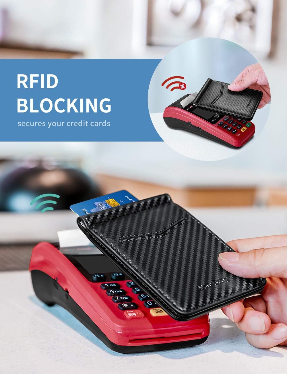 - BLOQUEO RFID: la tecnología de bloqueo RFID cumple con los estándares de seguridad FIPS-201, mantiene su tarjeta de crédito e identificación seguras, mientras que las señales de 125 KHz como las de las llaves de las habitaciones de hotel y las tarjetas de acceso no se pueden bloquear.