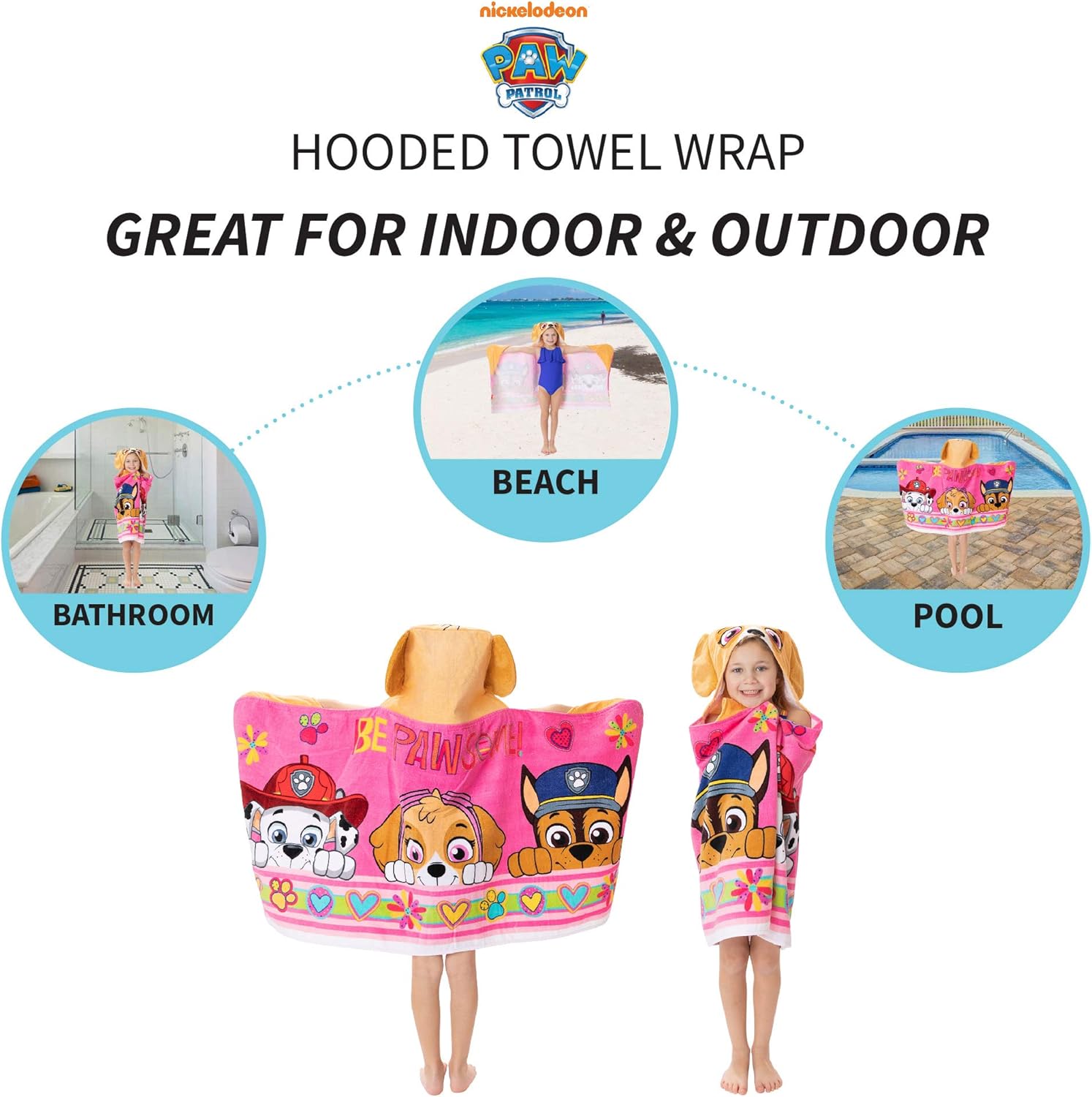- Diseño de Patrulla Canina: Paw Patrol añade un toque de estilo a esta bonita y tierna toalla con capucha. Envuelve a tu hijo con imágenes coloridas de Marshall, Chase y Skye de la popular serie animada. Orejas 3D y detalles Skye en la capucha de esta encantadora toalla rosa y café ayudan a dar vida al querido personaje de Nickelodeon.