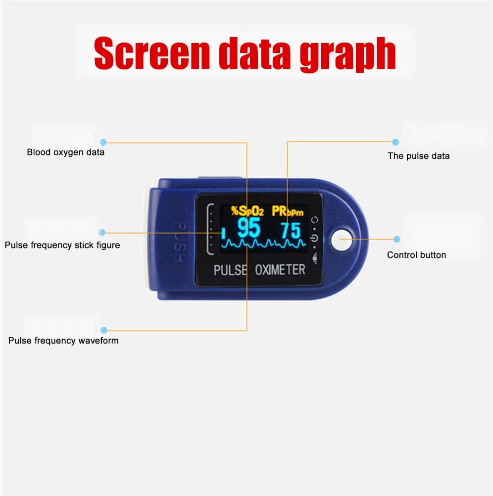 - Información en pantalla: valor de SpO2, pulso, gráfico de barras y curva plestimográfica.