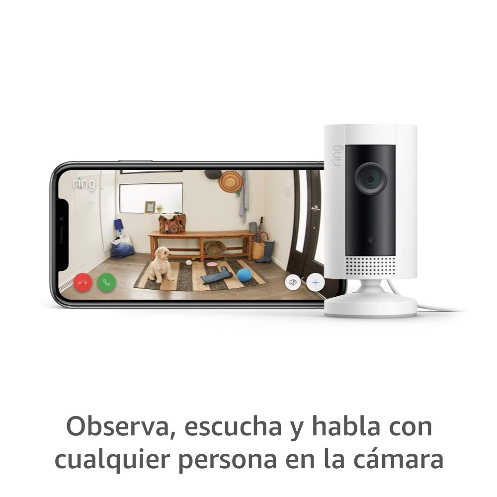 - Esta cámara compacta con enchufe, exclusiva para el interior del hogar, te permite ver, escuchar y hablar con personas y mascotas captadas por la cámara, desde tu teléfono, tablet o dispositivo Echo seleccionado.
