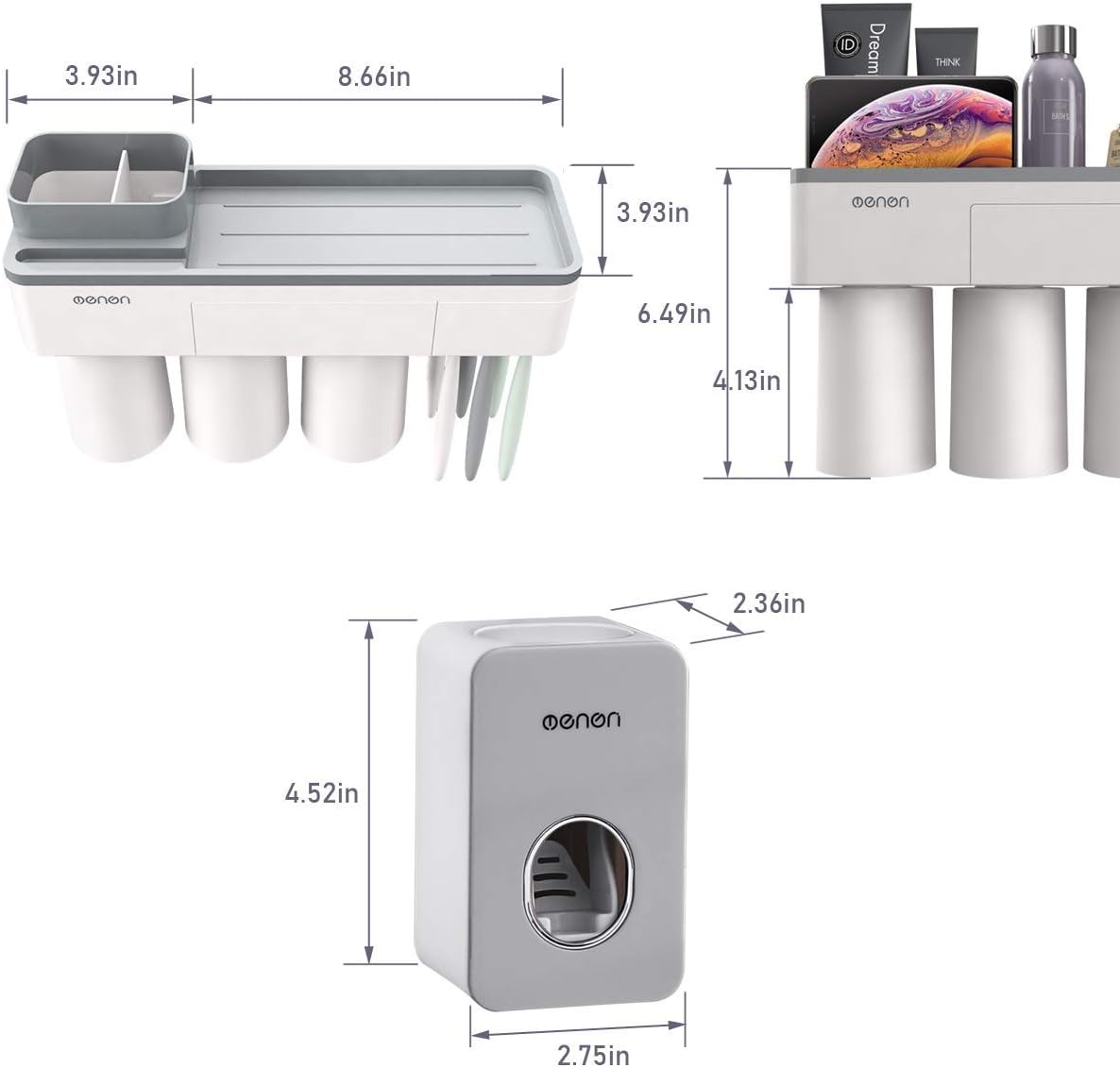 - [DISEÑO MULTIFUNCIONAL] El portacepillos puede acomodar 3 tazas (350 ml) para uso familiar, adecuado para 6 piezas de cepillos de dientes. Puede poner pasta de dientes, afeitadora, limpiador facial y cosméticos en la encimera grande. Además, un cajón adicional está diseñado para almacenar su lápiz labial u otros accesorios pequeños, como el soporte del teléfono celular.