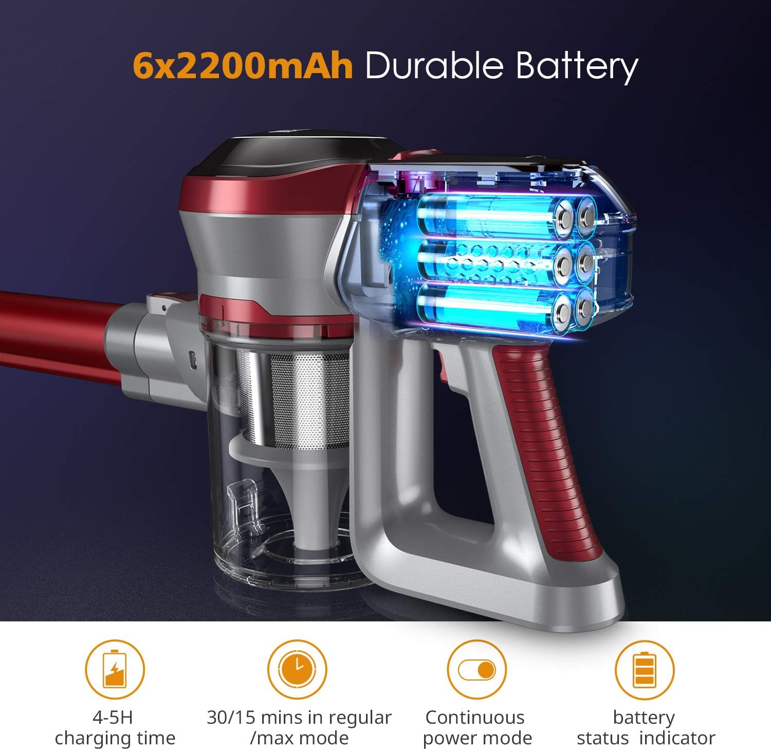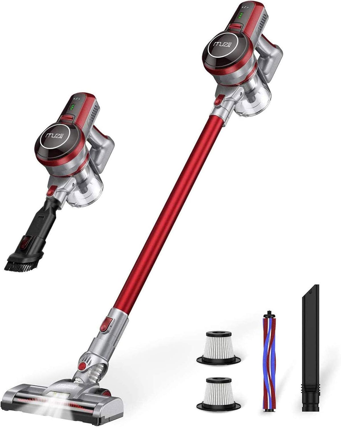 - 12 Kpa fuerte succión] El aspirador Muzili tiene 2 modos de succión ajustables, la fuerte succión puede ser de hasta 12 Kpa, con batería recargable de 2200 mAh, una carga completa solo necesita 4,5 horas y su tiempo de trabajo varía de 15 minutos a 30 minutos, lo que es totalmente satisfactorio para una limpieza completa. Haz tus tareas domésticas más simples.