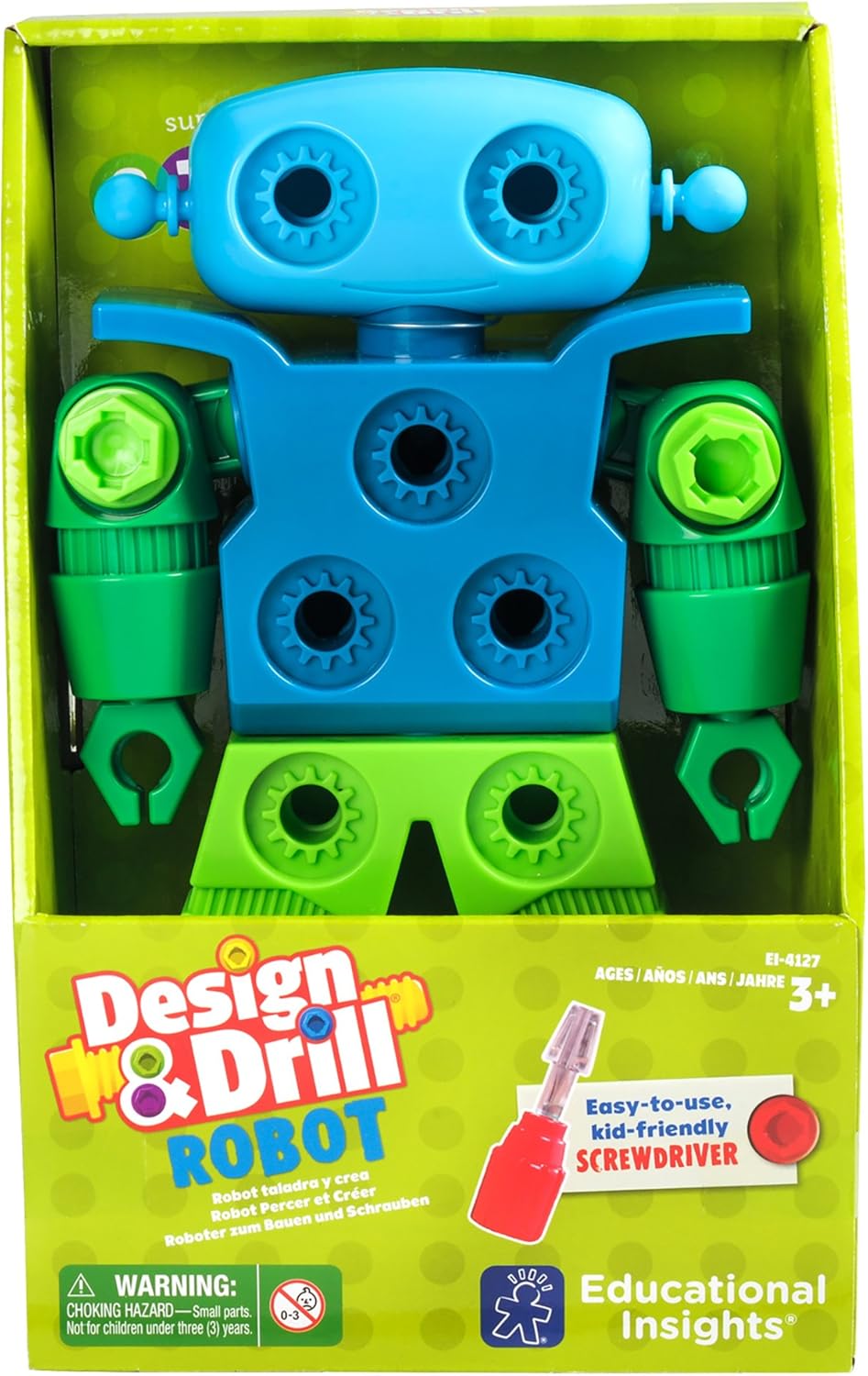 - Los niños del preescolar pueden unir los brazos del robot y luego practicar la perforación de pernos multicolores con el destornillador para niños