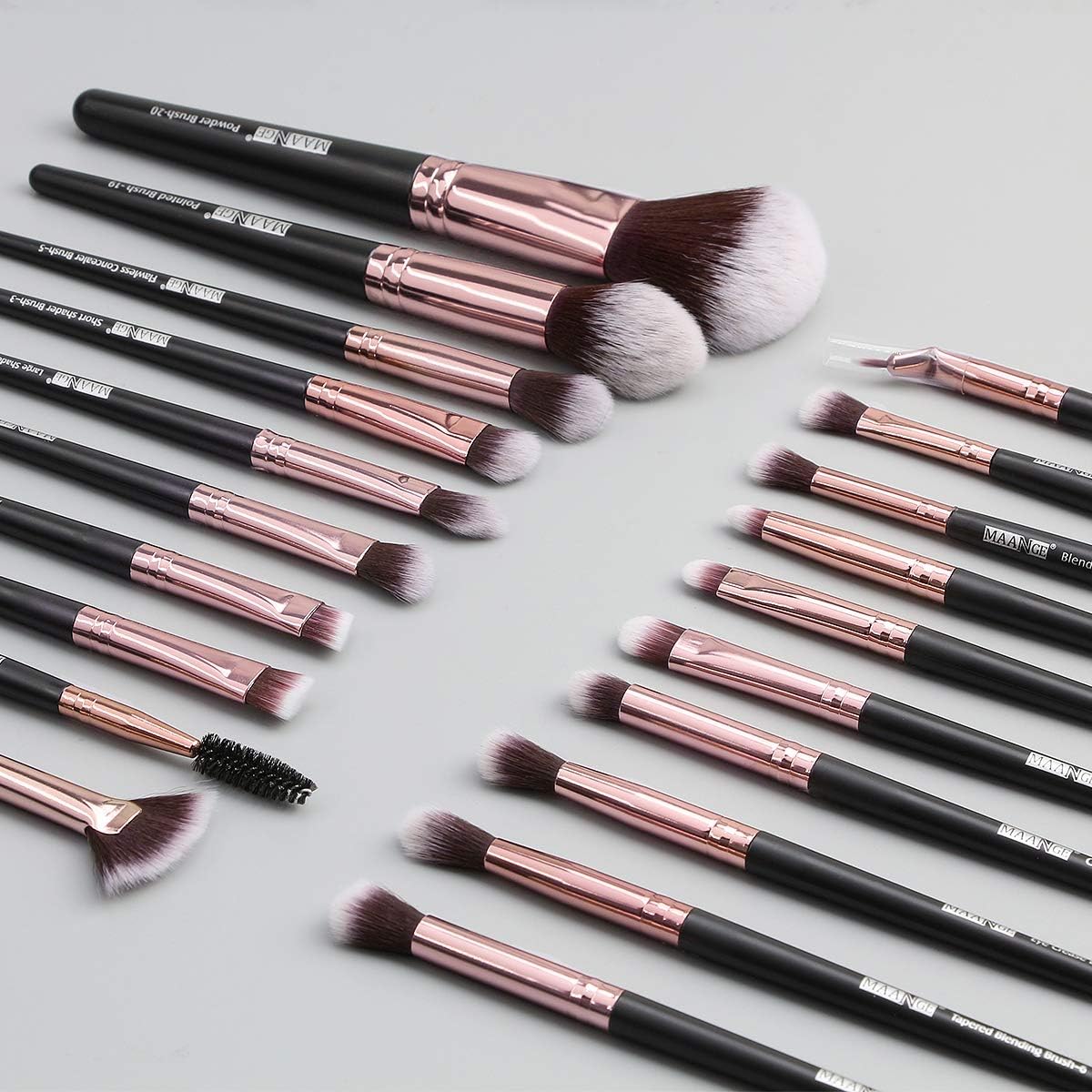 - 1) Juego de Pinceles de Maquillaje Natural: 2 piezas de cepillos faciales grandes + 18 piezas de cepillos pequeños para ojos.