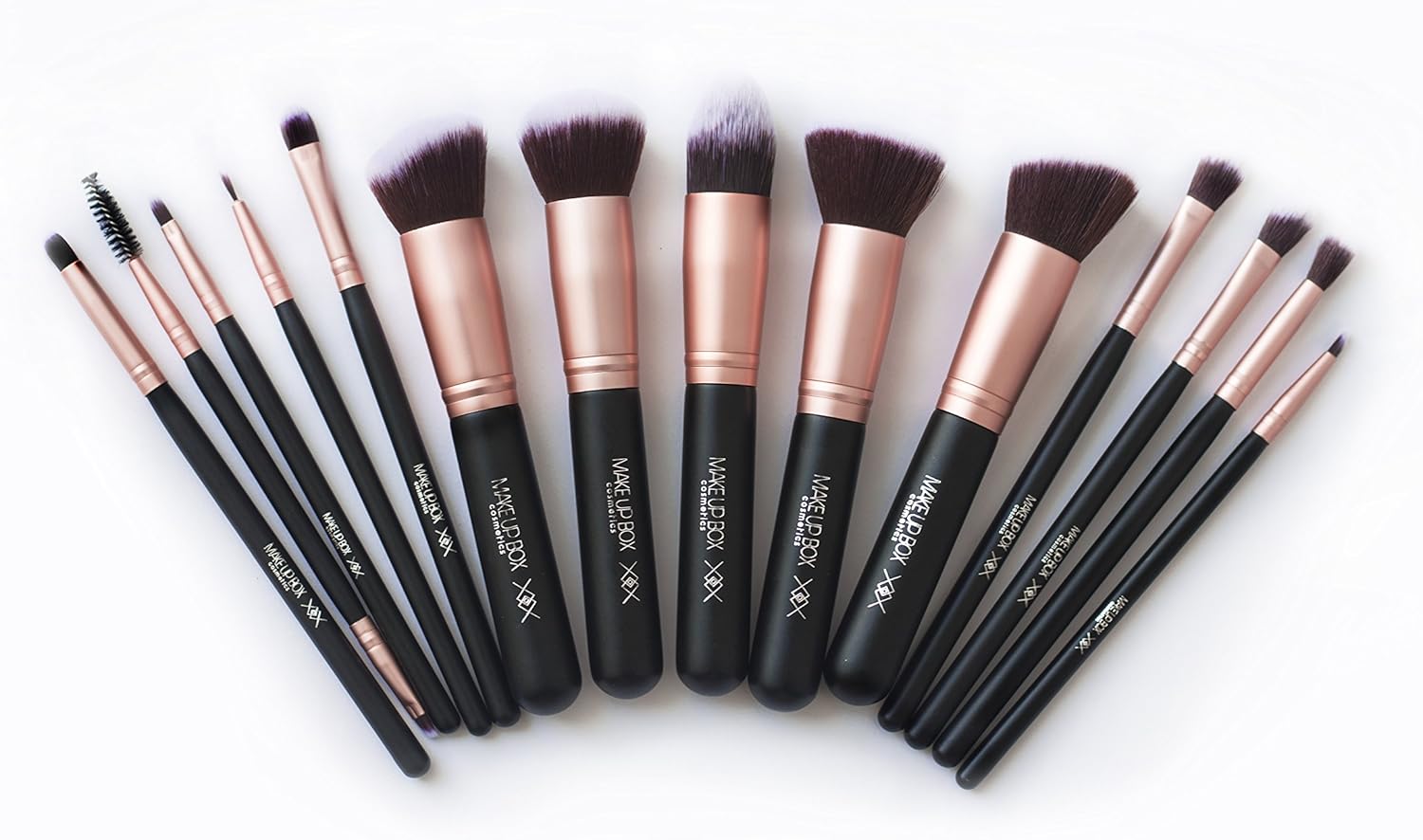 - Este set Makeupbox incluye 14 brochas sintéticas con un acabado Rose Gold