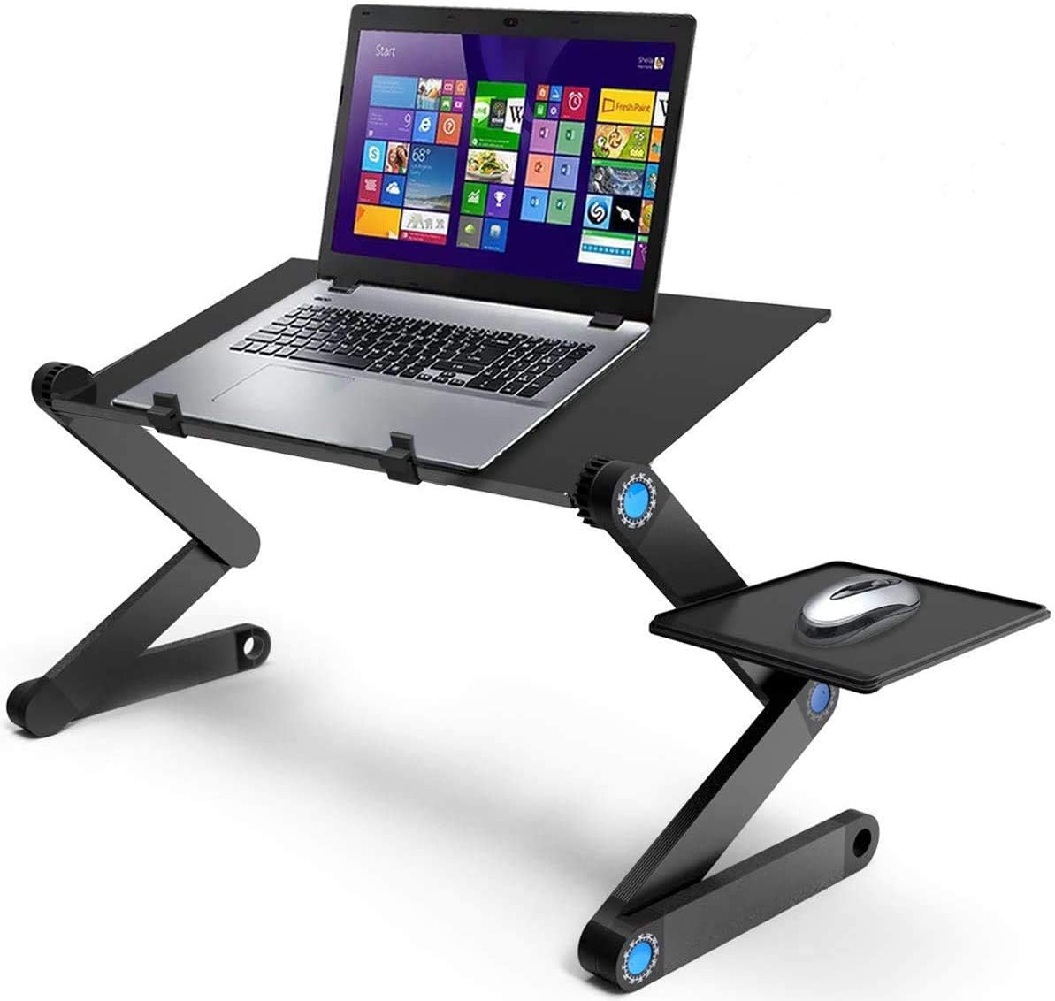 - Diseño duradero, esta mesa para computadora portátil está hecha de aleación de aluminio ultraligera y de alta resistencia con 2 cierres antideslizantes y 6 conectores de bloqueo automático ABS ajustables sólidos para transportar y colocar su computadora con facilidad.