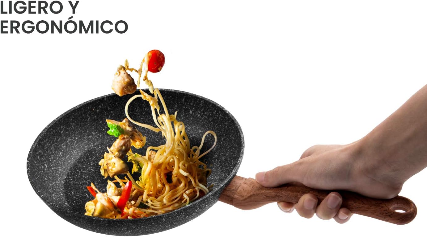 - CÓMODO MANGO ERGONÓMICO RECUBIERTO DE SILICONA. Su cómodo mango recubierto de silicona, con efecto de madera es antiderrapante, resistente al calor y cómodo al uso. TAMAÑO DEL SARTÉN: 20CM