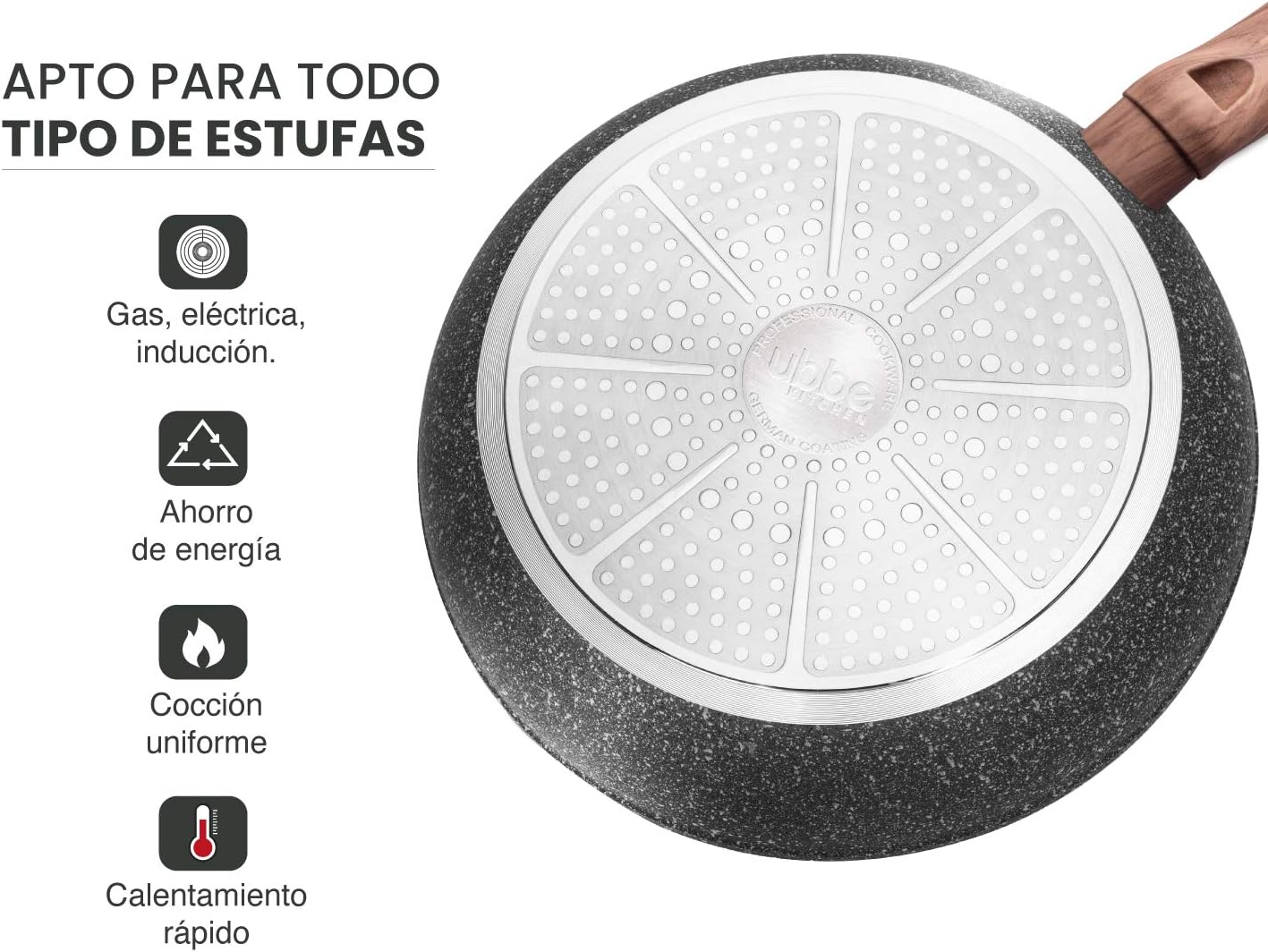 - PARA TODO TIPO DE ESTUFAS. Este sartén, puede utilizarse en todo tipo de estufas: gas, eléctrica e incluyendo de inducción.