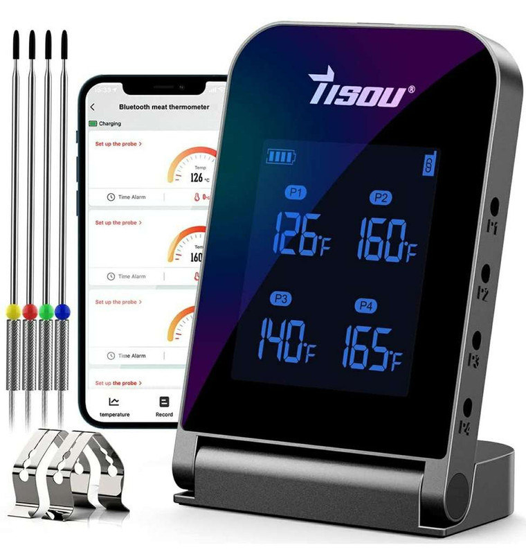 Amazon: TISOU Termómetro inalámbrico Bluetooth para carne con 4 sondas, inteligente LCD digital para barbacoa | Envío gratis con Prime