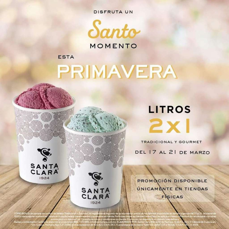Para celebrar la primavera, Santa Clara tendrá al 2x1 los litros de helado Tradicional y Gourmet del 17 la 21 de marzo.
