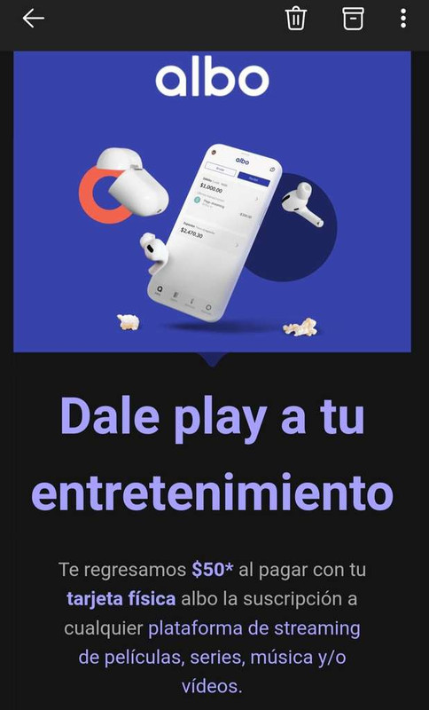Albo $50 de descuento al pagar con tarjeta física un servicio de streaming (usuarios seleccionados)