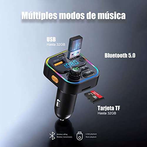 Amazon: Transmisor FM Bluetooth para Coche, Carga Rápida con PD 20W o QC3.0 18W, RGB, Manos Libres, TF y USB hasta 32GB Activar Cup\u00f3n del Vendedor