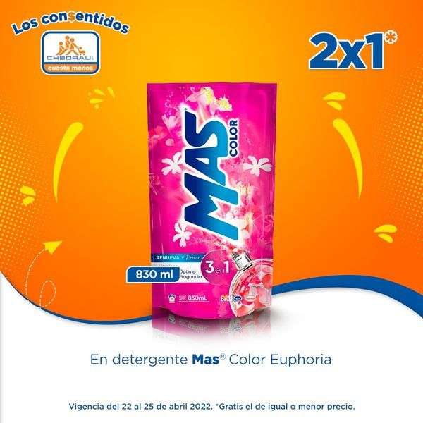 Chedraui: 2 x 1 en Detergente líquido Mas Color Euphoria 830 ml