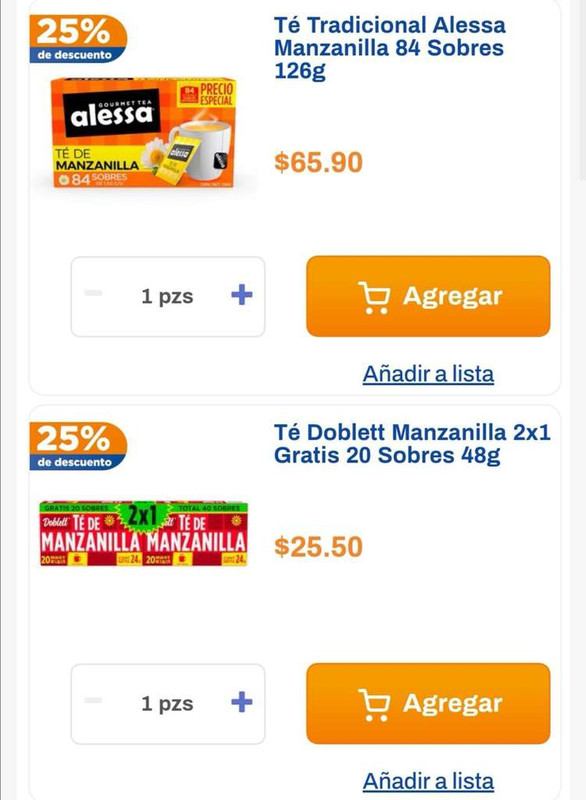 Chedraui: 25% de descuento en Té Alessa Manzanilla 84 Sobres y Té Doblett 2X1
