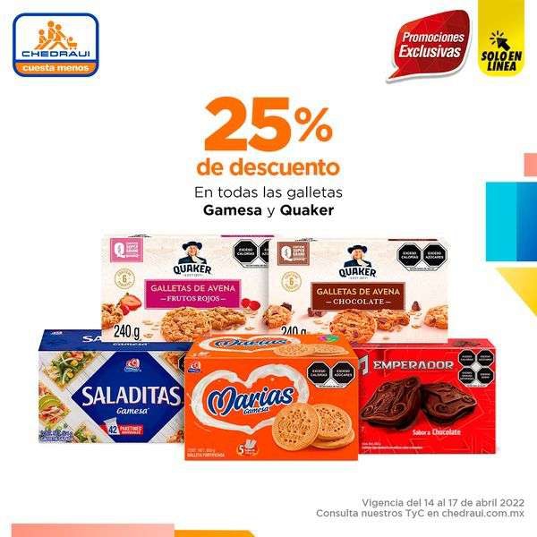Chedraui: 25% de descuento en todas las Galletas Gamesa y Quaker