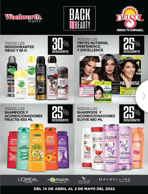 Del Sol y Woolworth: Ofertas "Back to Beauty" vigentes al Lunes 2 de Mayo