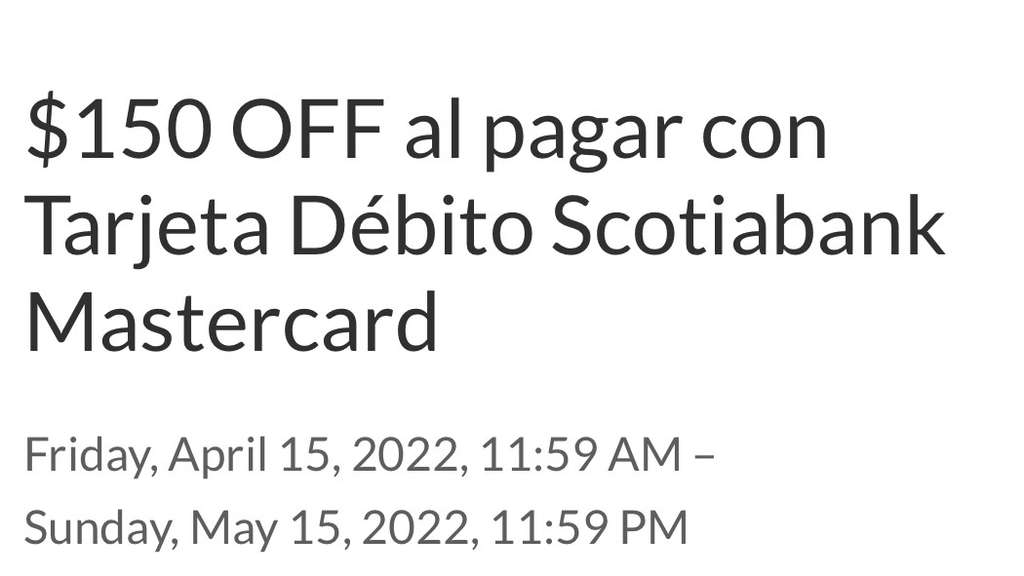 Rappi $150 de descuento al pagar con tarjeta de débito Scotiabank Mastercard