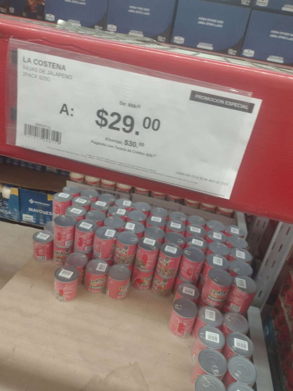 Sams el rosario 2 latas rajas la costeña por $27 aplicando 10+1 precio normal $56