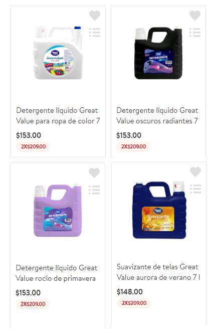 Walmart Detergentes y suavizantes 7 lt Gran Valor en 2 x $209