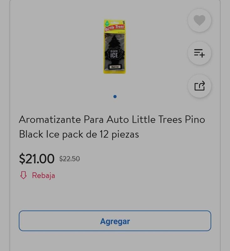 Walmart Ir a la oferta Merodeando por la app de Walmart me encontré con este aromatizante que tiene el precio que normalmente sería para una pieza, pero para este caso es de 12, que posiblemente sea un error.