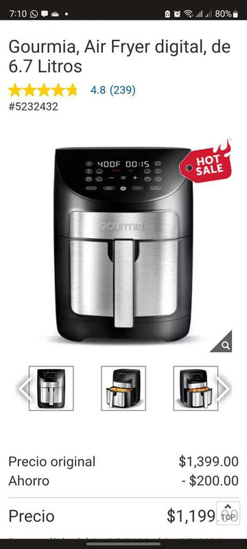 Freidora de aire digital Costco Gourmia de 6.7 litros