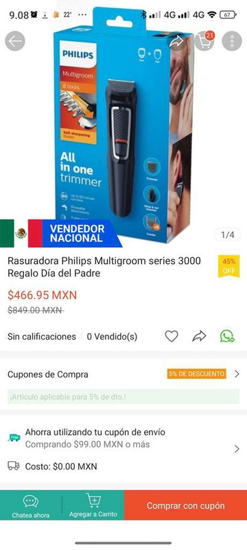 Afeitadora Shopee Philips ya con un cupón de la tienda tienes 375.95 buena suerte amigos