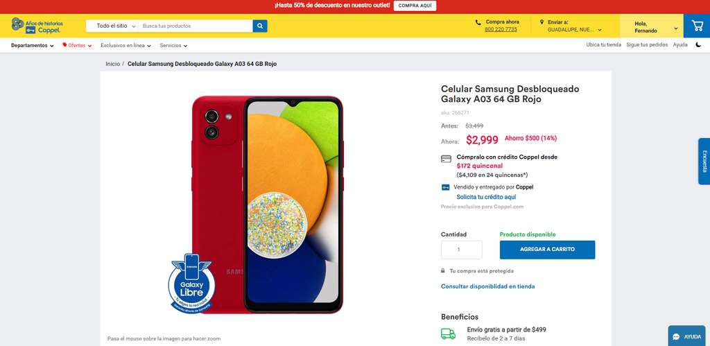 ¡¿Baratón en Coppel?! Celular Samsung Galaxy A03 64GB ROM / 4GBRAM