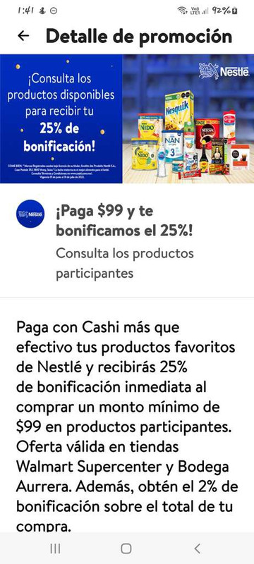 Cashi devuelve el 25% en la compra de productos seleccionados de Nestl