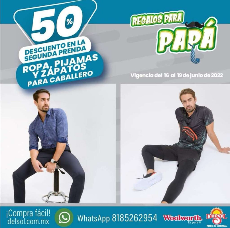 Del Sol y Woolworth: 2 x 1½ en la segunda prenda de ropa, pijamas y zapatos para caballero